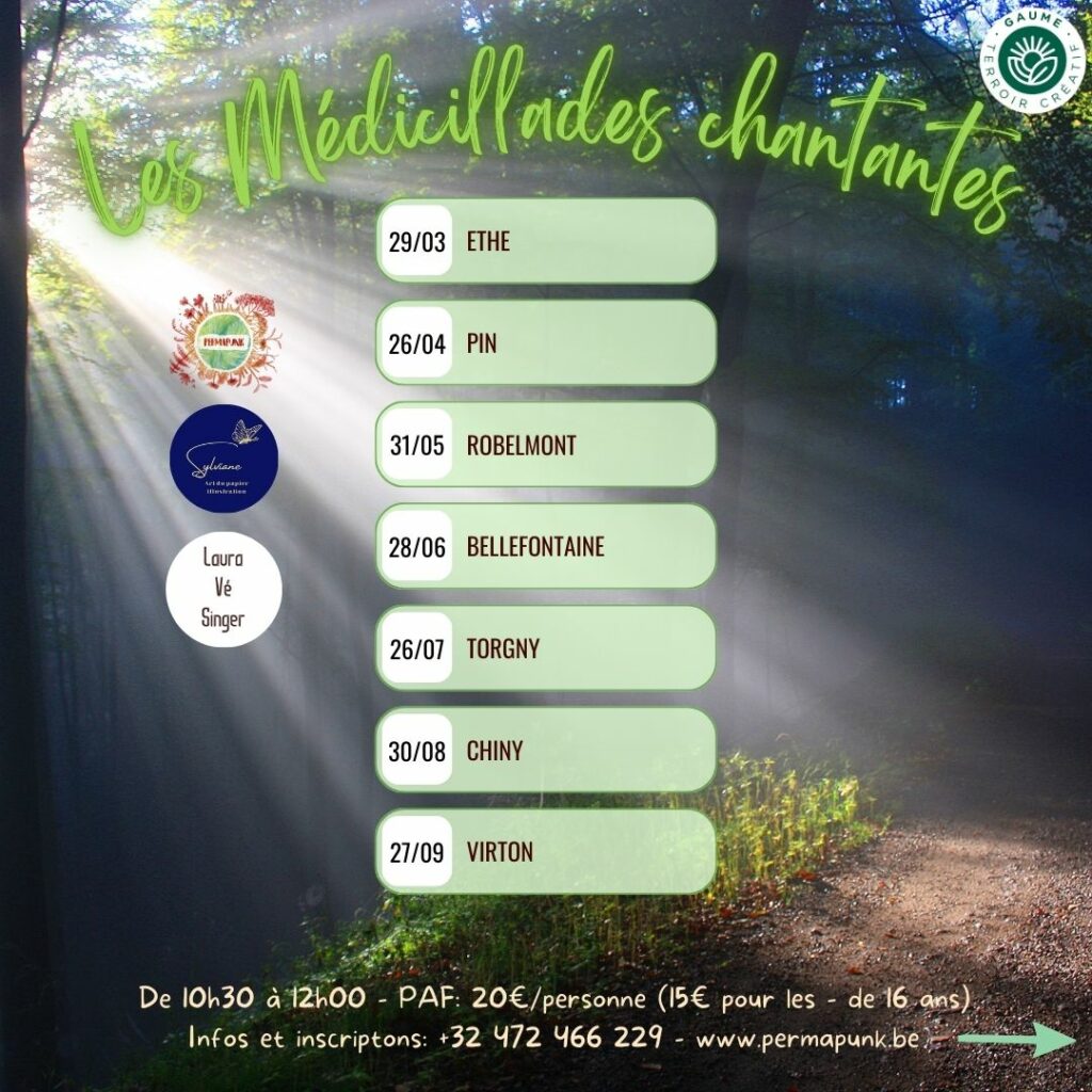 Les Médicillades chantantes sont des balades médicinales et musicales, des animations de reconnexion à soi et à la Nature, alliant chant, musique, art, et bien sûr, connaissances médicinales !