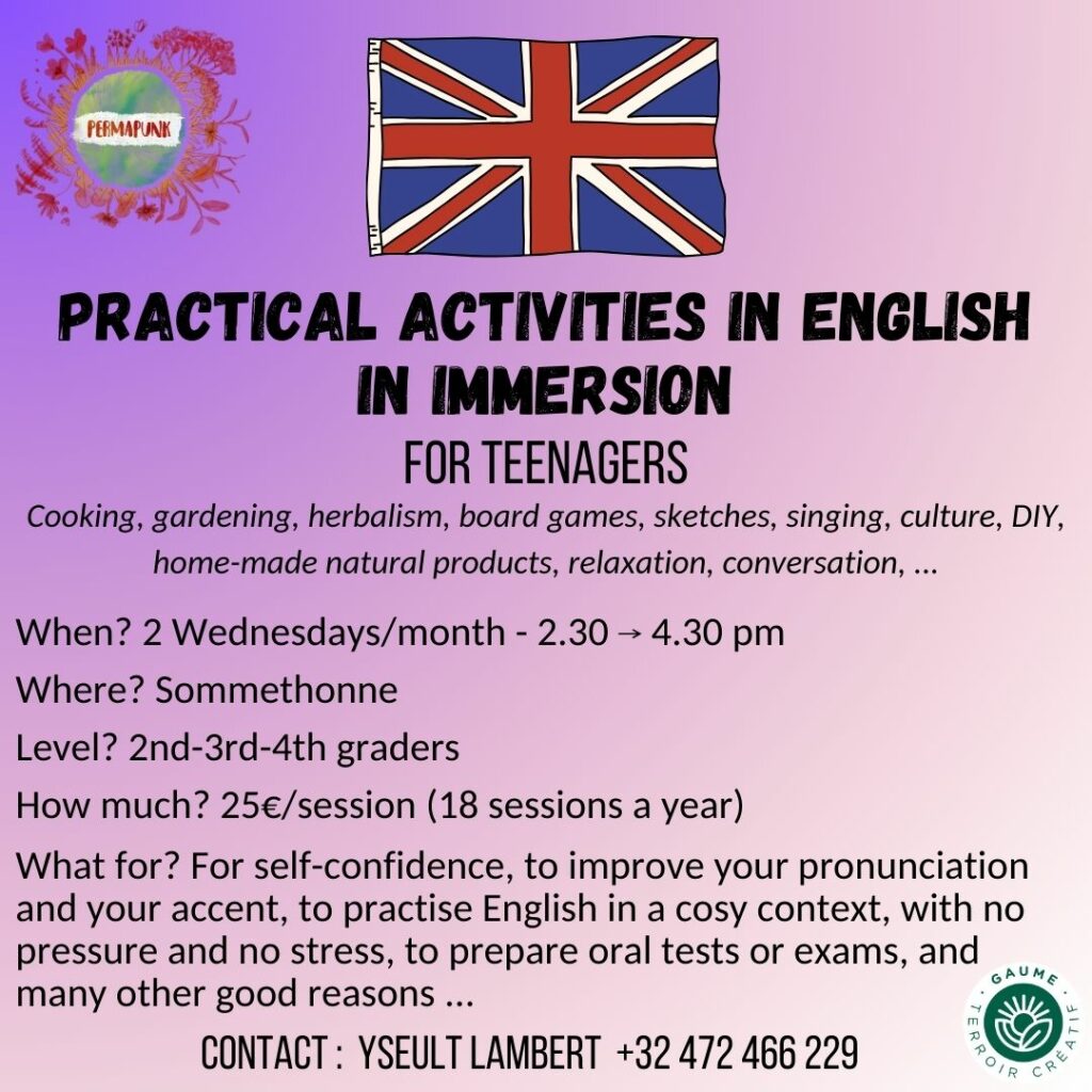 Des ateliers pratiques et ludiques en immersion anglais, pour ados de 2-3-4èmes années secondaires, en petits groupes,